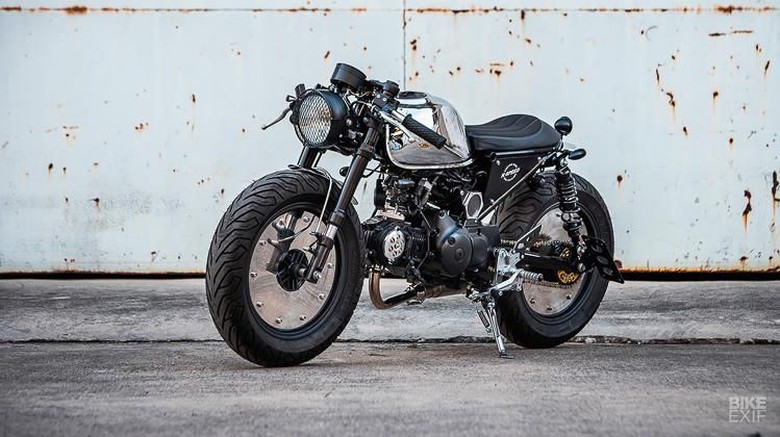 Melalui tangan dari bengkel tersebut, Honda Monkey disulap menjadi lebih agresif nan elegan dengan sentuhan warna silver pada tangki, dan sisanya berkelir hitam.