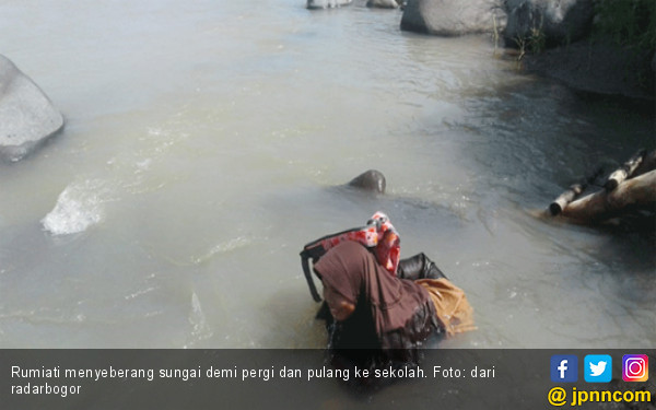jpnn.com, BOGOR - Rumiati (14), siswi SMP Negeri 2 Sukamakmur Jonggol Kabupaten Bogor harus mempertaruhkan nyawannya setiap hari, menerjang sungai agar bisa sampai ke rumah usai pulang sekolah.