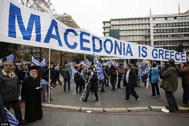 Warga Yunani dari seluruh kekuatan partai politik merasa berhak ikut menentukan nama negara tetangga yang menggunakan kata Makedonia.