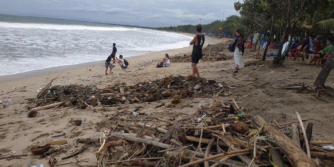 Sumber : https://www.merdeka.com/peristiwa/pantai-kuta-dipenuhi-sampah-kayu-dan-plastik-wisatawan-dilarang-berenang.html