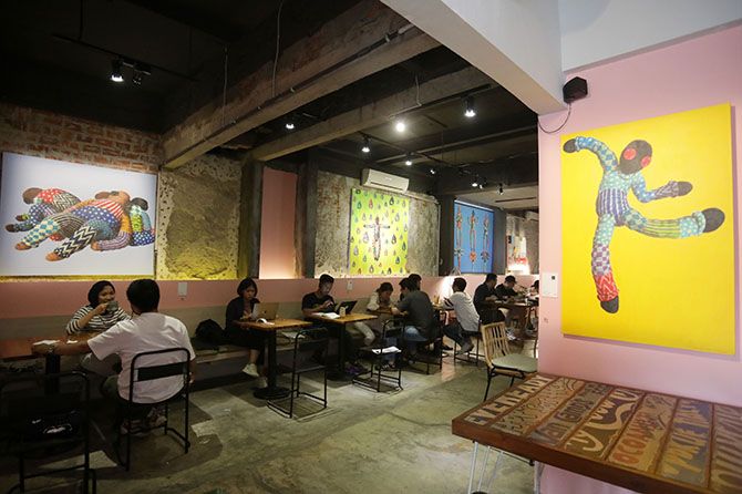 JawaPos.com - Kehadiran pameran karya seni di coffee shop seperti Kedai Kopi Kalyan menjadi terobosan baru. Sambil ngupi-ngupi cantik atau ganteng, kita bisa ngelihat pameran seni. Mantul alias mantap betul, guys. Hehehehe.