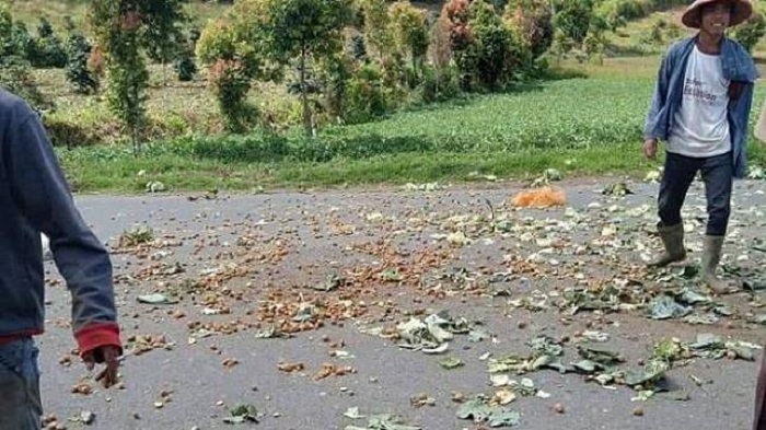 Kesal Harga Anjlok, Petani Jambi Ramai-ramai Buang Sayuran ke Jalan Raya