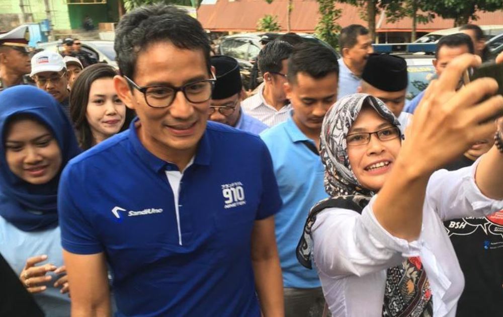 MAKASSAR—Cawapres nomor urut 02 Sandiaga Uno telah melakukan kampanye di 1075 titik di seluruh Indonesia. Dalam perjalanannya, Sandi mengaku terenyuh dan tersentuh ketika korban banjir Makassar di Kecamatan Tamalate, Kelurahan Mangasa, memasukkan uang ke kantongnya. Padahal, mereka tengah mengalami bencana.