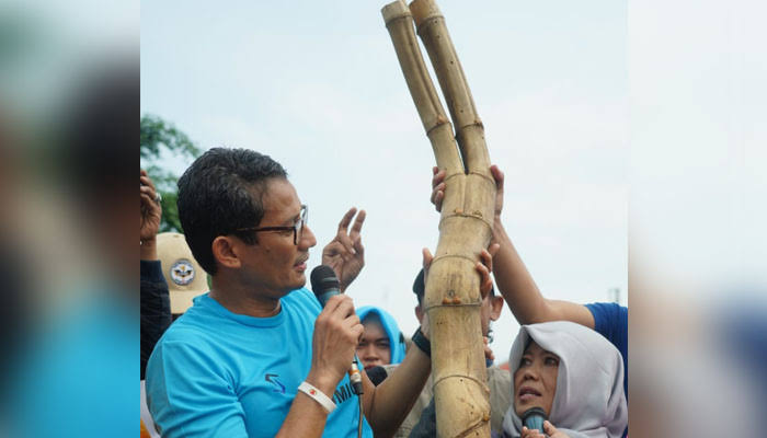 “Ini bukan rekayasa kan? Bukan bambu yang dibelah terus bercabang dua? Takut nanti dibilang bambu rekayasa bercabang dua,” kelakar Sandi.